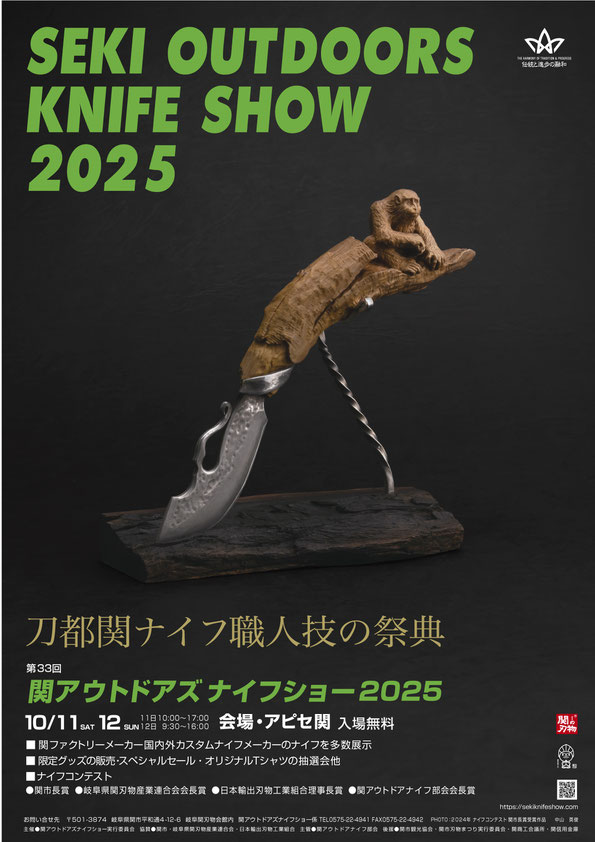 10月11日(土)、12日(日)の2日間、岐阜県関市で刃物まつり主要事業として関アウトドアズナイフショー2025を開催します。